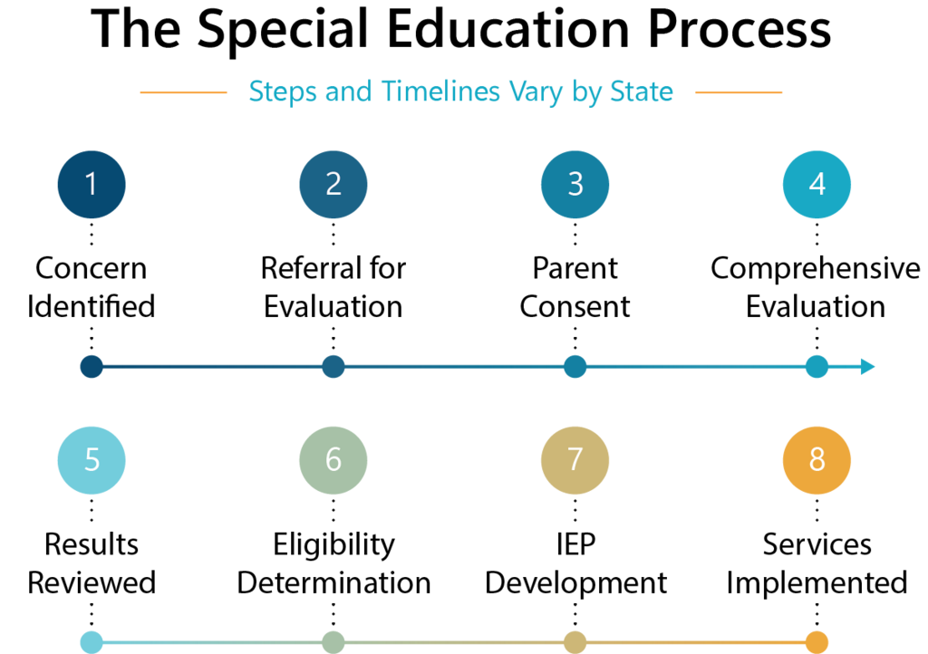 The special education evaluation process follows a structured series of steps established under the federal law known as IDEA. These steps are designed to determine whether a student has a disability that affects their education and what support may be needed. While the process is intended to be collaborative, it can often feel overwhelming for families who are unfamiliar with the procedures, terminology, and legal requirements involved. The timeline below provides a general overview of how the process typically unfolds.